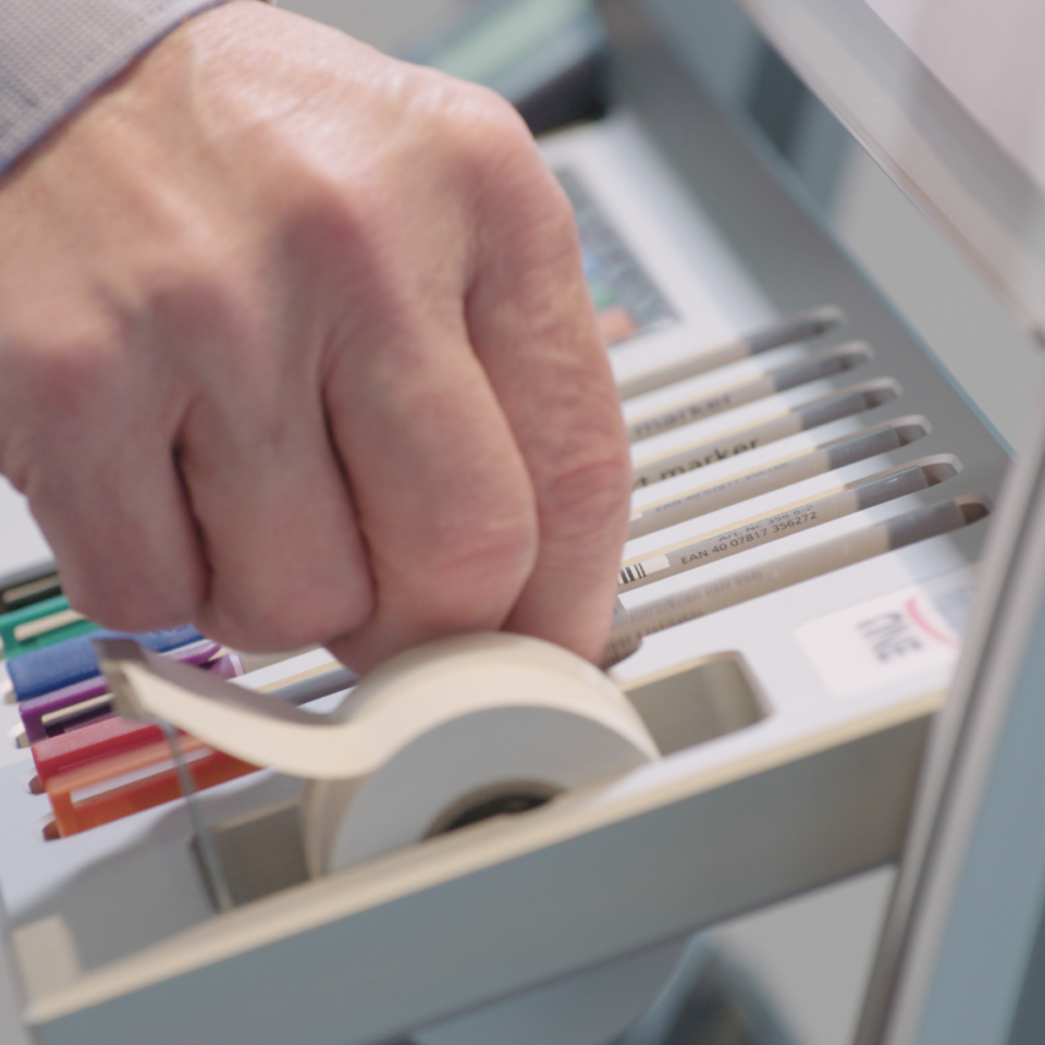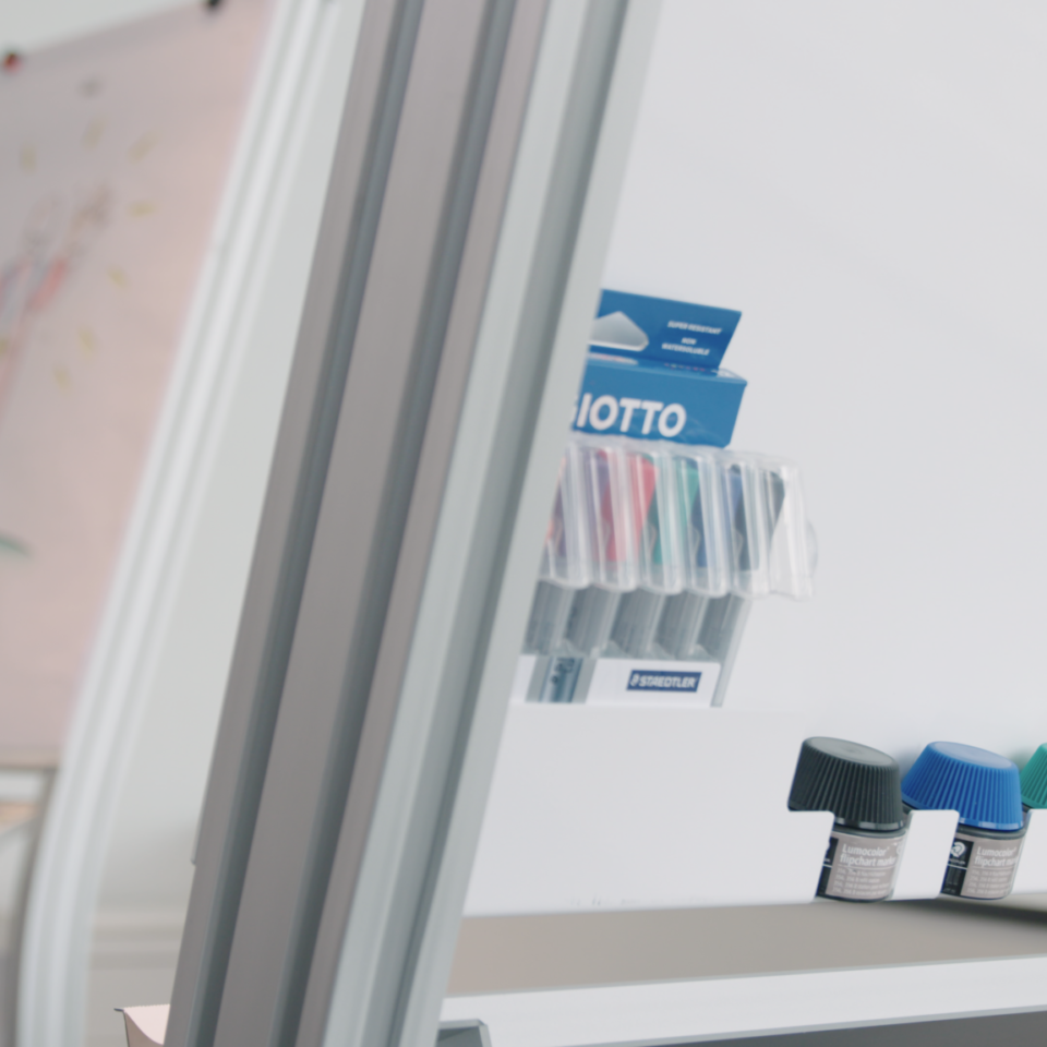 Mit der integrierten Nachfüllstation für Flipchartmarker auf der Rückseite von flipchart ONE schonen Sie die Umwelt und sparen Zeit und Kosten.